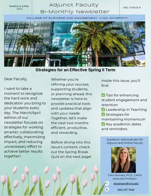 College of Business and Management Adjunct Faculty Bi-Monthly Newsletter: March-April 2025