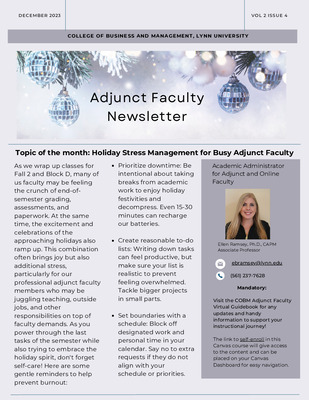 The Adjunct Faculty Newsletter is designed specifically to connect and welcome adjunct faculty to the College of Business and Management community.