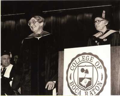 1988 College of Boca Raton Commencement: Sisters Mahoney and Fidelis at podium