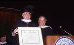 Trustee Frank Robino grants Mr. Harry L. Smith, a valued, long-time member of the IBM Corporation, as well as a member of several community and civil organizations, an Honorary Doctor of Humane Letters on behalf of the College of Boca Raton at Commencement on May 4, 1991.