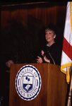Color image of Maureen Reagan, best-selling author and the daughter of President Ronald Reagan, delivers the Commencement speech at the College of Boca Raton Commencement Ceremony on May 4, 1991.