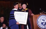 Colette Mahoney, RSHM, grants Dr. Thomas E. Lovejoy, Ph.D., a tropical and conservation biologist, an Honorary Doctor of Humane Letters on behalf of the College of Boca Raton at Commencement on May 4, 1991.
