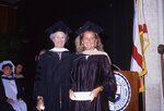 Dina Bickel presents the Medina McMenimen Bickel Fashion Award to Mary Jane Lindgren at the College of Boca Raton Commencement Ceremony on May 4, 1991. The award is presented to the graduating senior who exhibits outstanding leadership and the potential for a successful career in Fashion Marketing.
