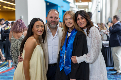 A 2025 Lynn University graduate and their loved ones pose for photographs at the Palm Beach Convention Center.