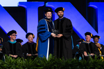 Lynn University President Dr. Kevin Ross presents the Gregory J. Malfitano Distinguished Alumni Award to Brett Podolsky '11.