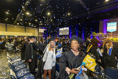 Confetti rains down as 2025 Lynn University graduates celebrate.