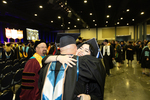 Dr. Paul Gormley, Professor, Criminal Justice Administration, College of Arts and Sciences, holds out his arms to a graduate.