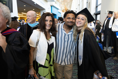 A 2025 Lynn University graduate poses for photos with loved ones at the Palm Beach Convention Center.