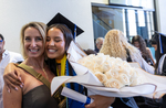 A 2025 Lynn University graduate embraces a loved one following the commencement ceremony at the Palm Beach Convention Center.