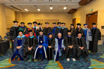 Members of the President's Platform Party. Members of the Cabinet, Academic Deans, Members of the Board of Trustees, and distinguished guests gather backstage during the 2025 Lynn University Commencement ceremony.