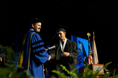 Lynn University President Dr. Kevin Ross awards degrees to graduates during the 2025 Lynn University Commencement ceremony.