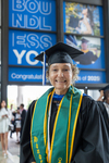 A 2025 Lynn University graduate poses for a photograph at the Palm Beach Convention Center.