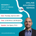 Dr. Jon Sperry holds a webinar on, "The ABC’s of Individual Psychology," for the Positive Discipline Association as part of their Online Adlerian Series on April 18, 2024. Translations provided with Arabic, French, Portuguese, and Spanish translation. Virtual.