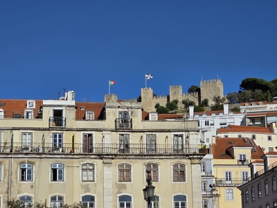 A view of the Castelo de São Jorge (St. George's Castle) perched atop a hill in Lisbon, Portugal in October 2025.