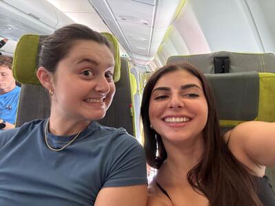 Employer Relations Manager Samantha Gallo and Study Abroad Advisor Caroline Martins pose together during a study abroad trip to Lisbon, Portugal in October 2025.