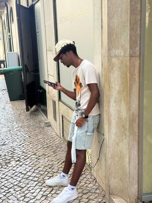 An aviation student looks at his phone during his study abroad trip to Lisbon, Portugal in October 2025.