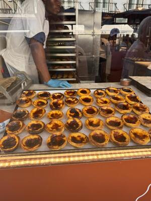 A tray of Portuguese custard tarts, known as pastel de nata.
