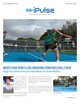 • February 2024 [Spring Week #2]: New Adjunct Professor “Anchors Down” iPulse: WPTV’s Anchor, Michael Williams, Has Taken on the Role as an Adjunct Professor to Help Mold the Next Generation of Journalists; Happy Birthday Boca!: Boca Raton’s Centennial Recently Celebrated; Comparing Learning Methods: iPads, Paper, and Computers in Education How Technology Shapes Learning; A Different Odyssey: “Nickel Boys” Receives Critical and Commer­cial Acclaim; The Disability Advocacy Club: This Club Looks to Foster Normality and Acceptance for Lynn Students with Disabilities; Channeling Home Through Music: Juan Fernández Expressed his Venezuelan Roots by Way of Music; Poet Laureate Comes to Lynn!: Richard Blanco’s Journey to Make History; From Backstage to the Spotlight: Lynn’s Fashion Retail Students Have Unfor­gettable Experiences at Two Luxury Fashion Shows
